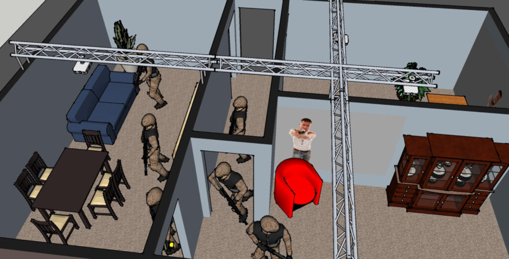 Cada unidade autônoma opera de forma independente em sua própria sala dedicada. Além disso, mantém a capacidade de progressão de cenários interconectados. Os resultados de desempenho na Sala 1 geram automaticamente desafios de acompanhamento personalizados para a Sala 2, criando uma experiência de treinamento verdadeiramente dinâmica. O sistema aprimora ainda mais o realismo por meio de sua funcionalidade híbrida, suportando simulações virtuais e exercícios de tiro real em ambientes virtuais (conforme demonstrado no visual anexo). <span style=”color: transparent; font-size: .1px;”>SiJAT-H – Híbrido</span> Com a capacidade de executar cenários independentes ou sincronizados em todas as unidades, o SINTRES Home of To Kill oferece flexibilidade de treinamento tático sem precedentes para equipes de segurança profissionais e policiais.