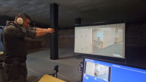 O Simulador de Tiro Híbrido SiNTRES é único. Ele reconhece tiros de munição real diretamente na tela de projeção. Esta tecnologia inovadora combina o realismo do tiro real com a segurança e a versatilidade do treinamento virtual.